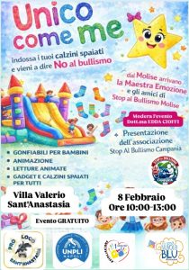 Sant’Anastasia –   Si terrà domenica 8 febbraio alle ore 10.00, presso Villa Valerio a Sant’Anastasia l’evento “Unico come me”, organizzato dalle associazioni Su Una Nuvola Blu, Love for Sant’Anastasia e dalla Pro Loco di Sant’Anastasia.