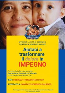Ricordiamo che è possibile donare attraverso bonifico su IBAN IT65W0321103400052168161620 intestato a “Comitato Domenico Caliendo” o sui recapiti che trovate su https://www.fondazionedomenicocaliendo.it/